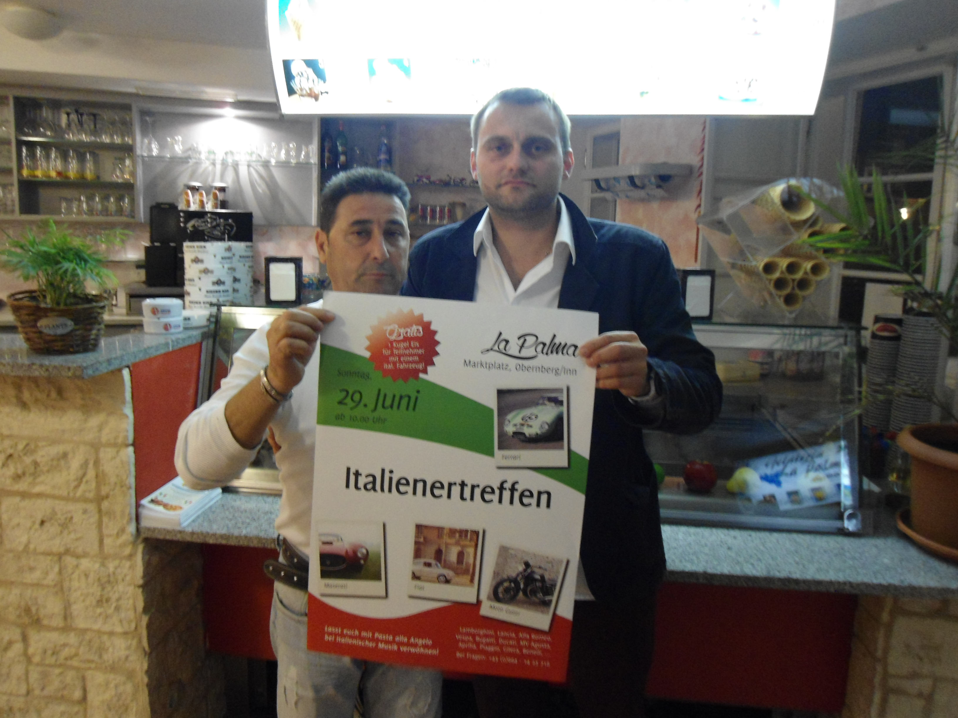 Am 28.5.2014 fand der 1. Stammtisch von Bürgermeister Martin Bruckbauer in der Gelateria Pizzeria La Palma statt. Einige ObernbergerInnen nutzten die Möglichkeit mit ihrem Bürgermeister und Vertretern anderer Fraktionen (Mitglieder der SPÖ, der ÖVP und der Bürgerliste BOMB waren anwesend) in lockerer Umgebung zu plaudern und sich auszutauschen.Durch die Einführung der Bürgermeisterstammtische in allen Obernberger Lokalitäten kann man in ungezwungener Atmosphäre dem Bürgermeister und anwesenden Fraktionsvertretern gewisse Ideen, Anliegen, Beschwerden, Visionen usw. … mitteilen und besprechen. Frei nach dem Motto ..damit gleich von vornherein die Gemeinderäte erfahren, was draußen los ist“Nächste Gelegenheit für die Obernberger Bevölkerung bietet sich am 18.6. ab 20 Uhr in der Tanzbar Brandy. Bürgermeister Bruckbauer Martin freut sich auf eine rege Teilnahme. Hingewiesen wird auch noch auf eine Veranstaltung der Pizzeria La Palma. Am 29.6.2014 (ab 10 Uhr) werden zahlreiche motorisierte ,,Italiener“ am wahrscheinlich schönsten Marktplatz Österreichs zu bewundern sein.