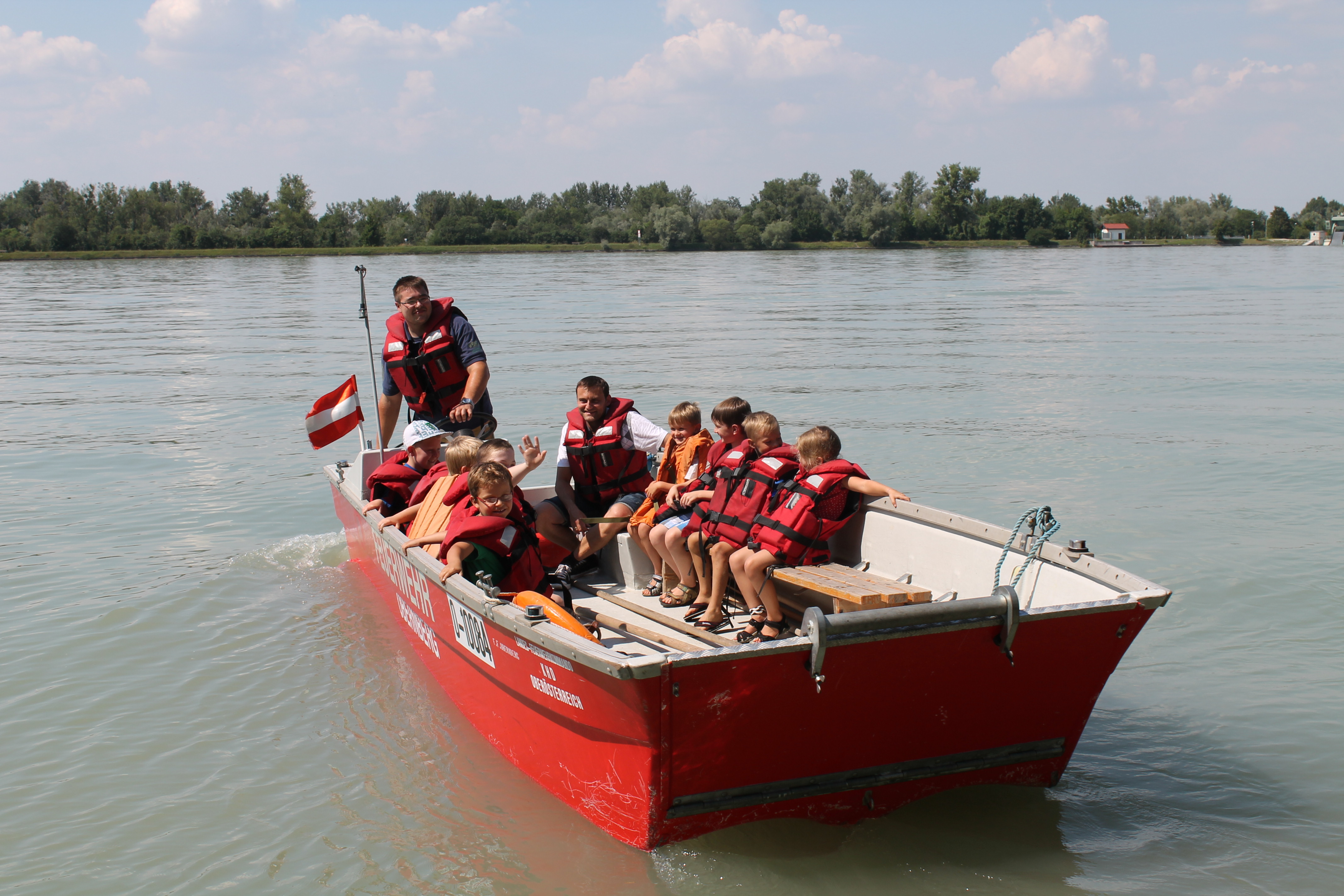Feuerwehr, Polizei und Rotes Kreuz Obernberg am Inn bescherten in der zweiten Ferienwoche den Kindern und Jungendlichen einzigartige Einblicke in deren Arbeitsbereiche. Im wunderschönen Burgareal konnten die Kinder mit dem Schlauch hantieren, alle Einsatzfahrzeuge begutachten, technische Geräte ausprobieren und vieles mehr. Das absolute Highlight war eine sensationelle Bootsfahrt am Inn – Stausee in Obernberg am Inn. Abgerundet wurde die Blaulichtpower in der Gelateria La Palma am schönsten Marktplatz Österreichs, das kühlende Eis haben sich nämlich alle verdient. Bürgermeister Martin Bruckbauer bedankt sich ganz herzlich im Namen der Kinder und des gesamten Gemeinderates bei allen drei Blaulichtorganisationen für diese äußerst ereignisreichen Stunden in den Ferien.