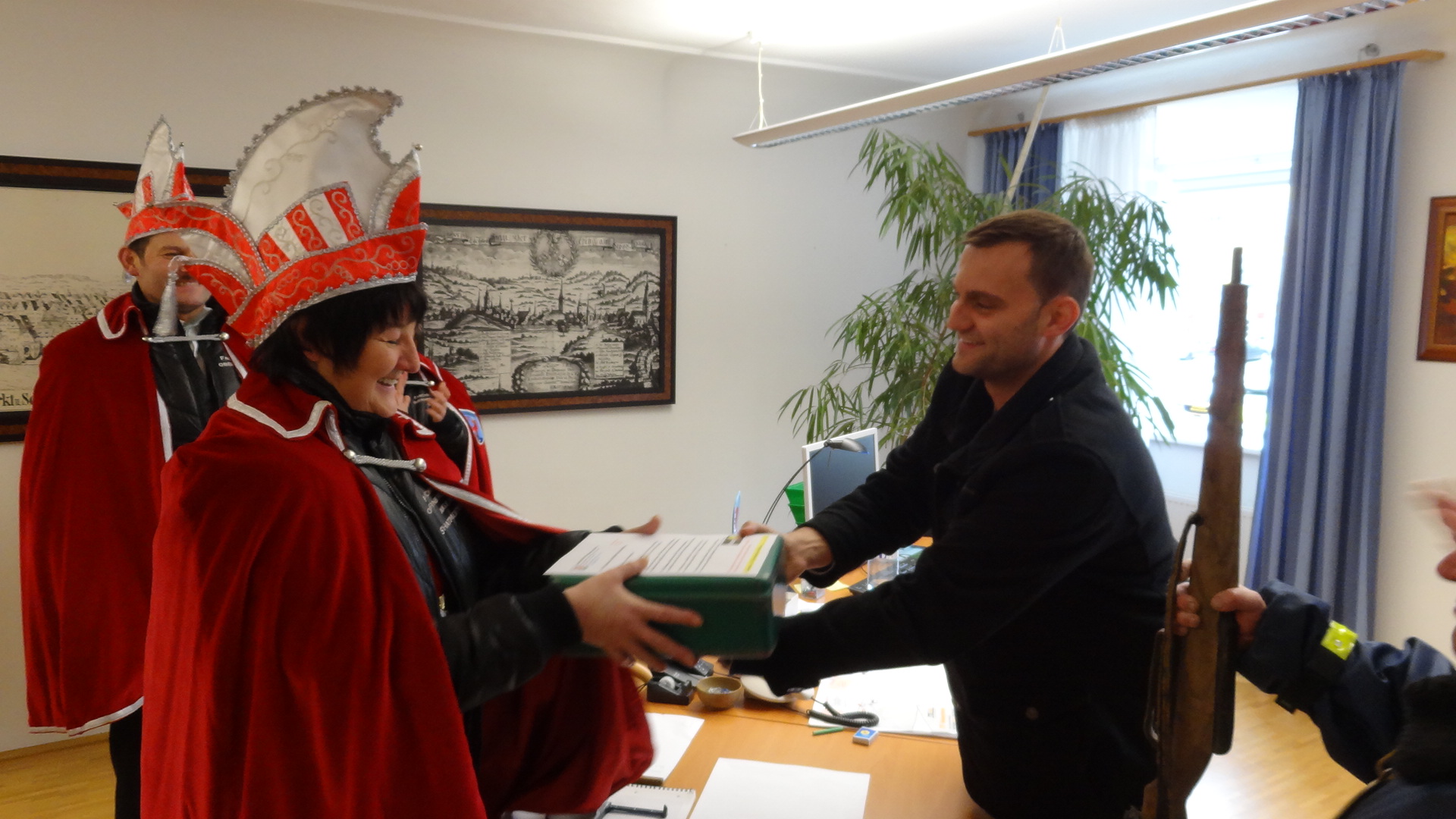 Eine große Abordnung der Faschingsgilde Obernberg am Inn stürmte samt Faschingskanone das Marktgemeindeamt in Obernberg am Inn. Bürgermeister Martin Bruckbauer wurde gefangengenommen, aber nach kurzer Zeit nach der Annahme von einigen ,,lustigen“ Bedingungen wieder freigelassen. Der Gemeindeschlüssel und die Gemeindekasse wurden an die Gilde übergeben. Die Faschingsgilde übernimmt nunmehr bis zum Faschingsdienstag, 17.2.2015, die Utensilien und freut sich auf tolle Veranstaltungen in der 5. Jahreszeit.