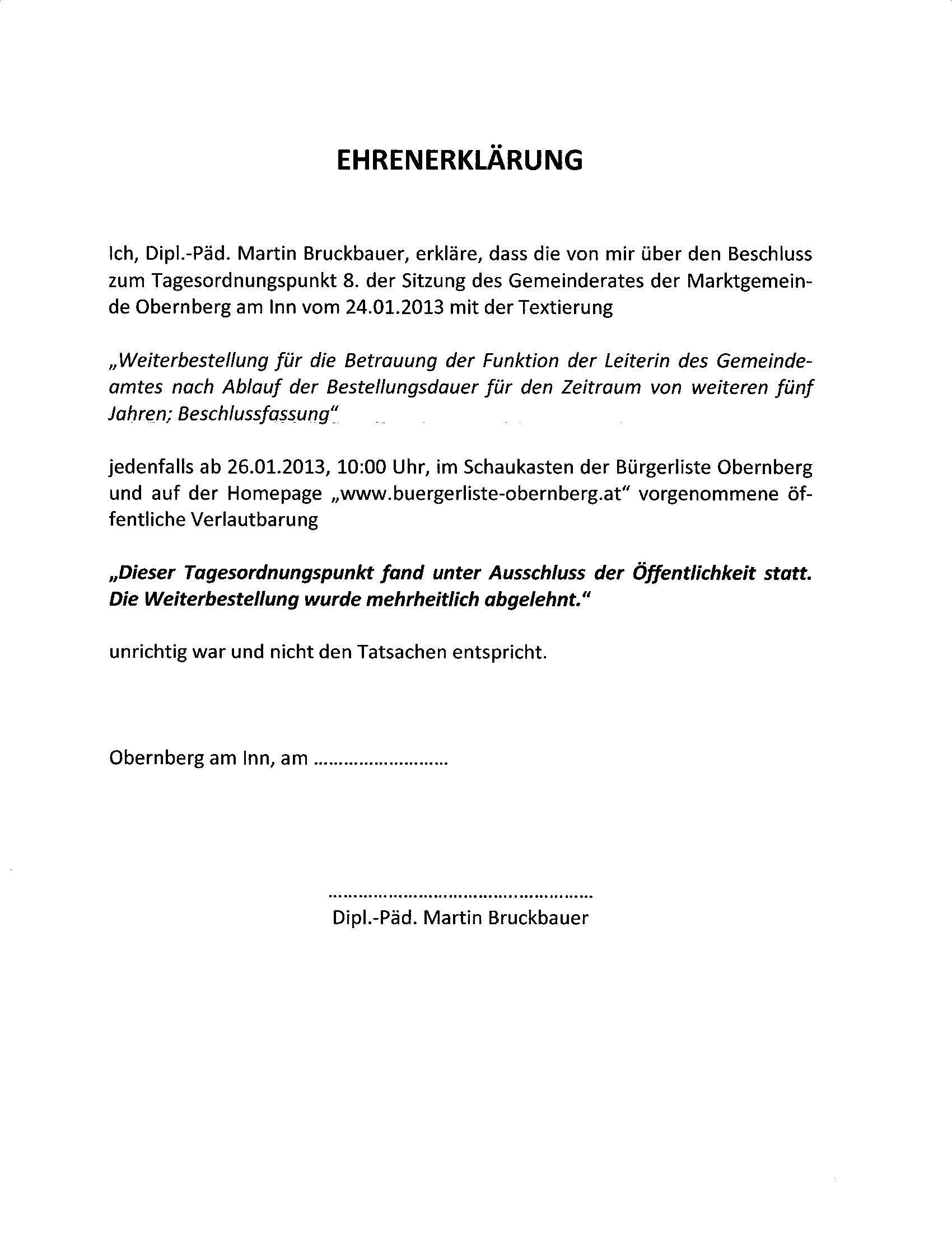 Jetzt schreiben der BGM. und der VIZEBGM., dass die Weiterbestellung abgelehnt wurde. Wegen dieser Aussage wurde ich nach der Gemeinderatssitzung vom 24.1.2013 mit einem Drohbrief des Bürgermeisters und zwei Anwaltsbriefen der Amtsleiterin attackiert (Anm. Klicken Sie einfach darauf) und schauen Sie sich in Ruhe alles an und dann entscheiden Sie bitte selbst über Menschlichkeit, Ehrlichkeit, Miteinander,…